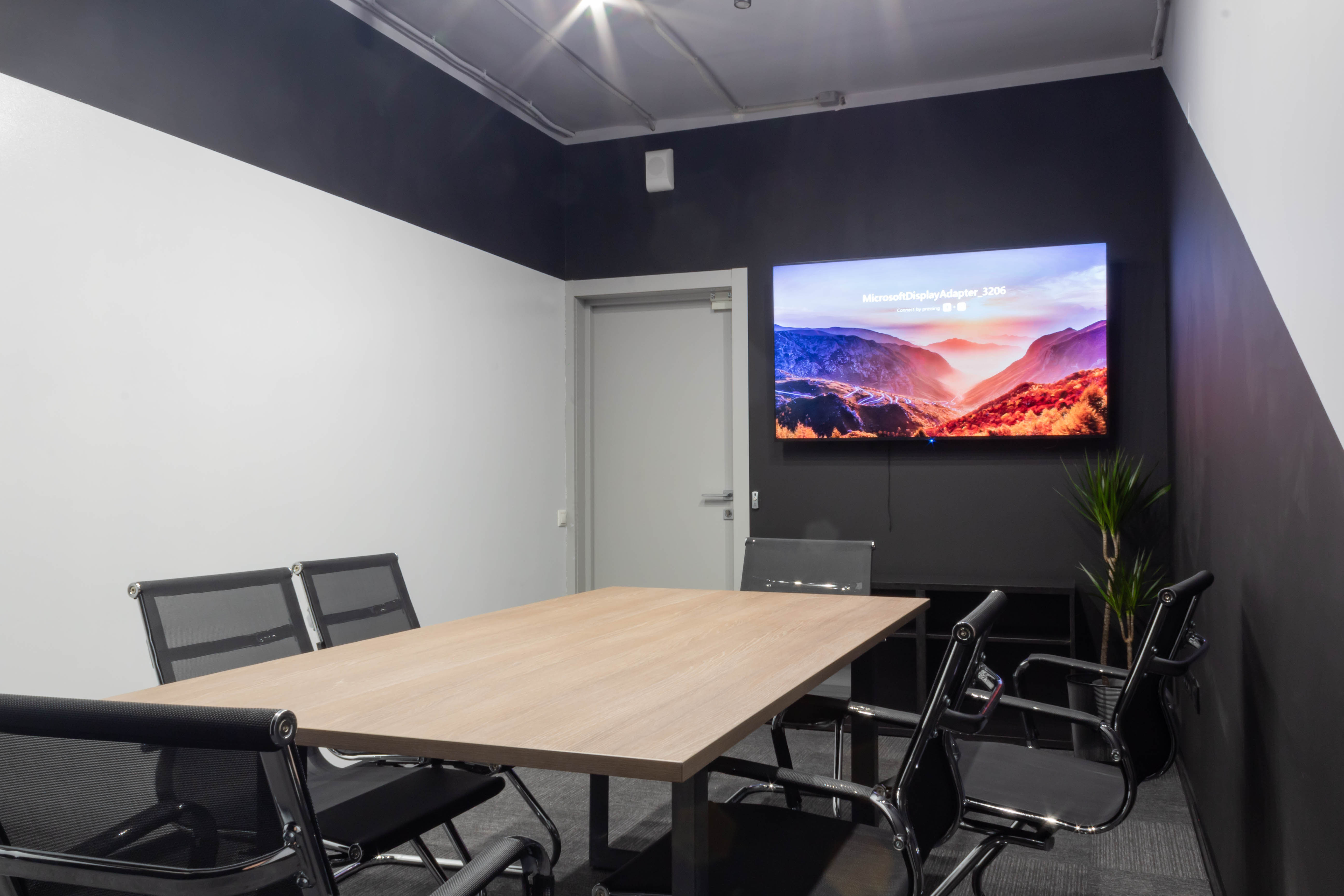 - Большой экран/ТВ с выходом в интернет + беспроводное подключение к устройствам — для презентаций и демонстраций без лишних проводов.