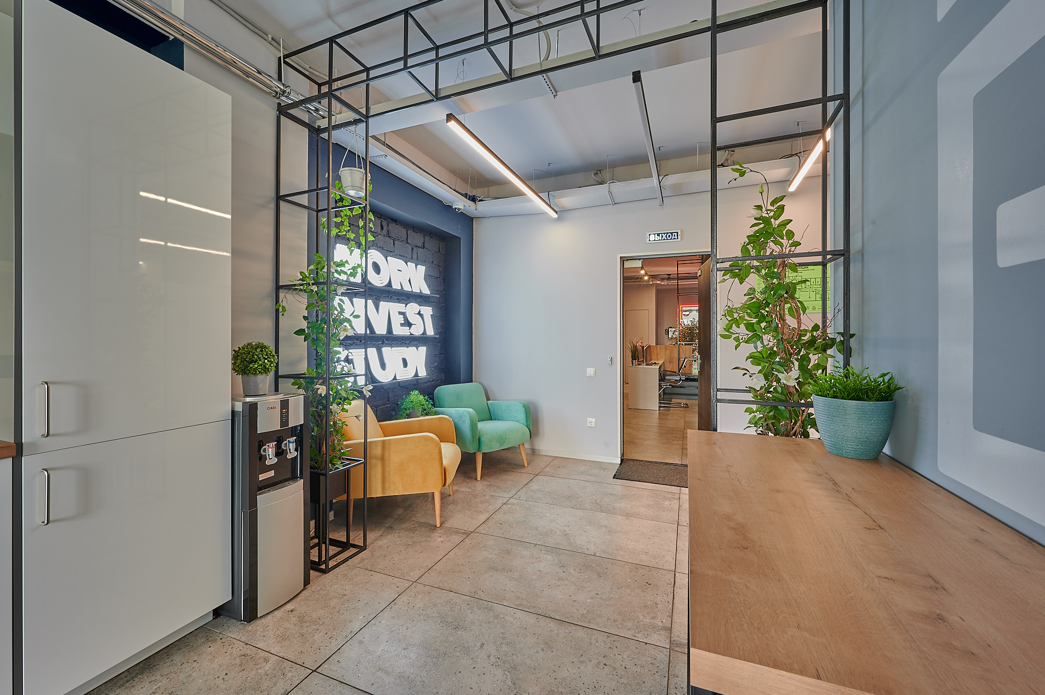 - Стена с покрытием для маркеров — удобно фиксировать идеи прямо в процессе.